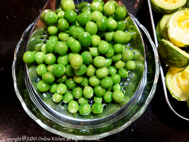 グリンピースの色を鮮やかに出し、