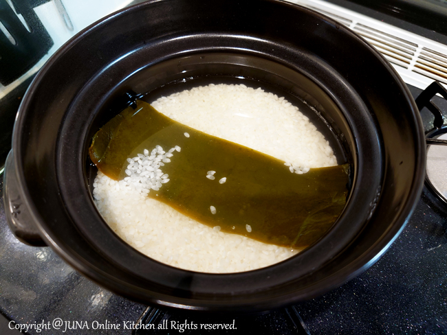 昆布は2合の場合は10×8cmほどを目安にします。3合炊きの場合は一回り大きいものに。