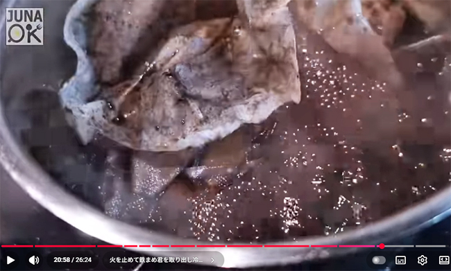 3.2に1の黒豆、お茶パックなどの不織布に入れた鉄まめを入れて6時間ほどおく(粗熱が取れたらふたをする)。