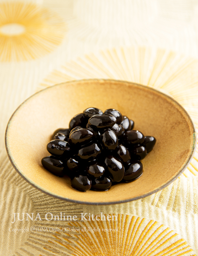 丹波の黒豆で作ると、ただ甘いだけではなく、豆の味そのものがひきたったおいしい黒豆が出来上がります。