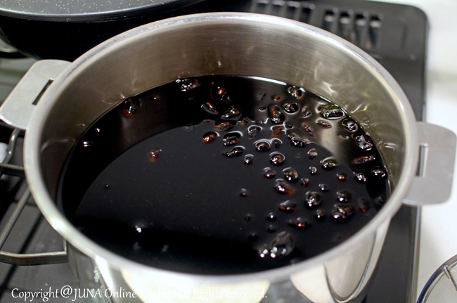 ※煮汁量が黒豆より下になると黒豆にシワが入ってしまいます。