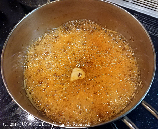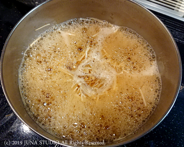 最後のアクを取りきって火を止める。