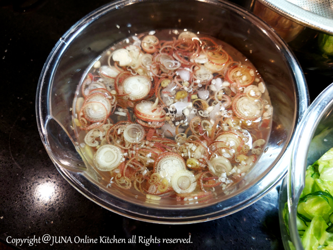 昆布つゆで簡単に作ったタレをかけていただきます。
