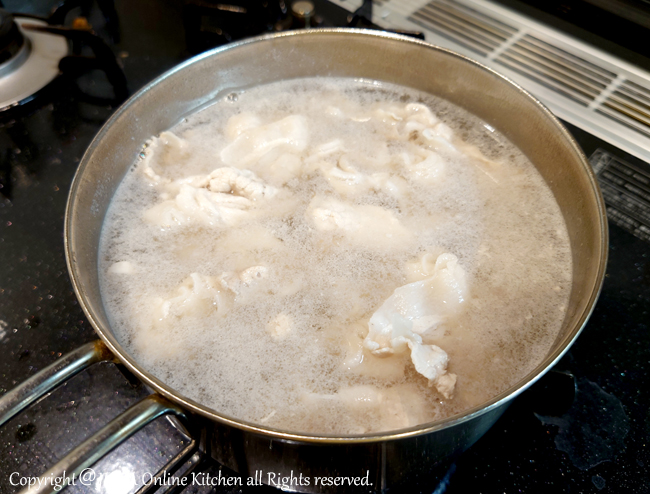 豚肉はグラグラした湯でゆでると硬くなってしまうので、静かにゆで上げます。