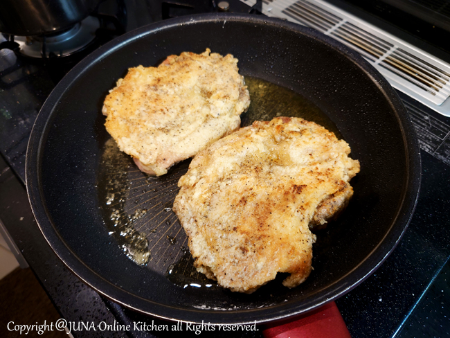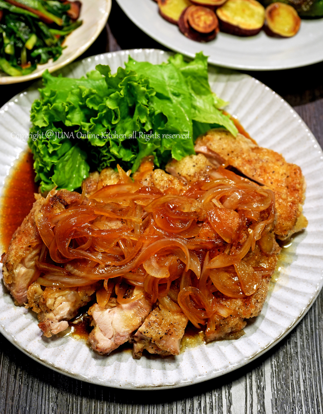 ソースをかけたら皮目がパリッとしているうちに食べましょう。