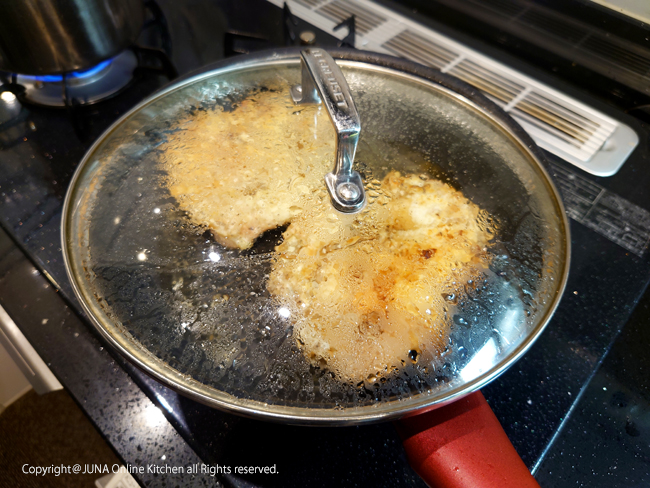 6.時間が来たらふたを取り、中火に上げて再び両面を焼き直してパリッとさせる。