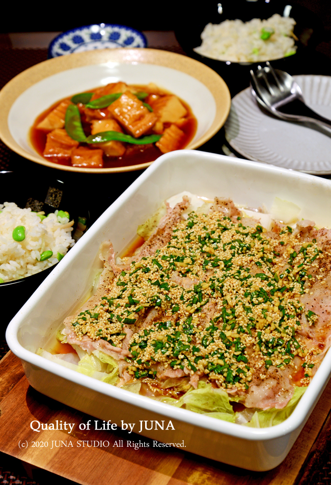 たっぷりのタレをかけて食べます。とても簡単にできますよ~