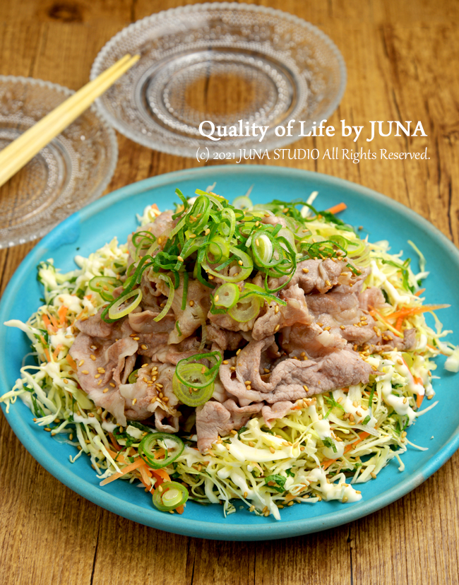 大葉やにんじんと和え、豚しゃぶと一緒にもりもりいただきます。