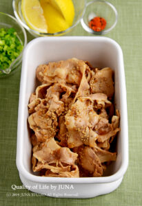 - 豚薄切り肉(しゃぶしゃぶ用)・・・200g