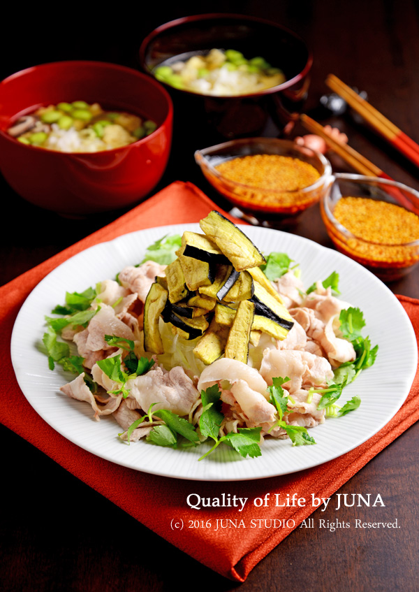 サクサクなすと楽しむ豚しゃぶ&枝豆入り卵スープ