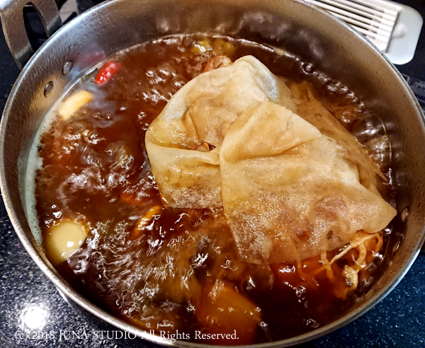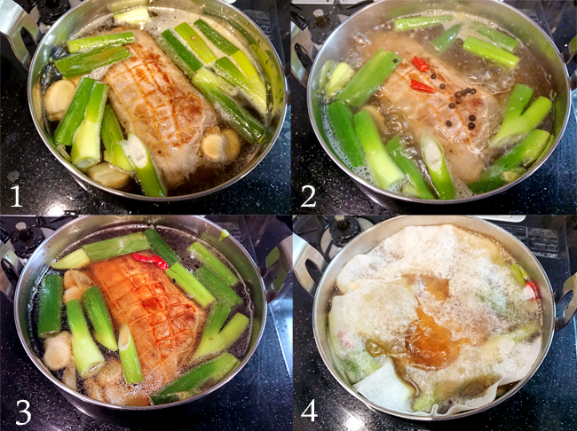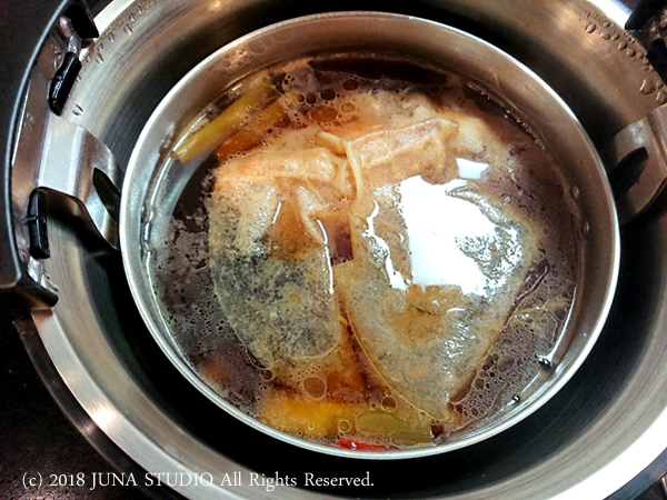保温鍋を使わない場合は、弱火で豚肉に串がスッと通るまでコトコト煮ることになります。途中水分が足りなくなったら昆布だしを足していきます。