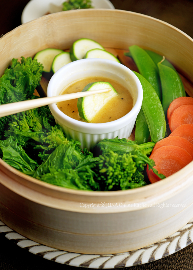 - 温かいホットソースで楽しむ蒸し野菜