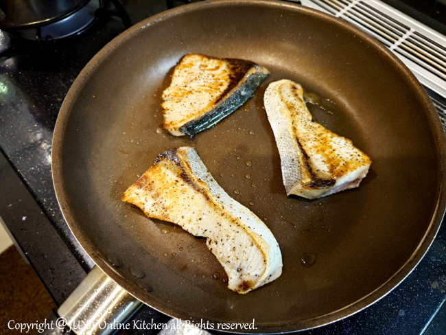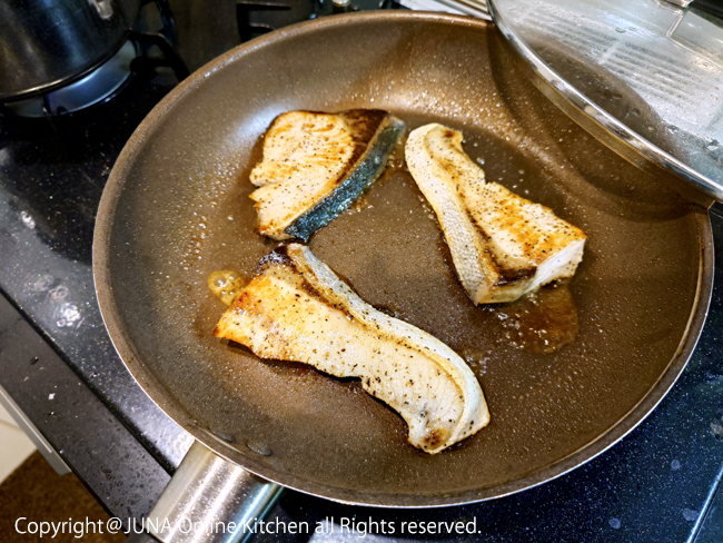 日本酒での蒸し焼きをはさむことで、ぶりをふっくらと仕上げます。