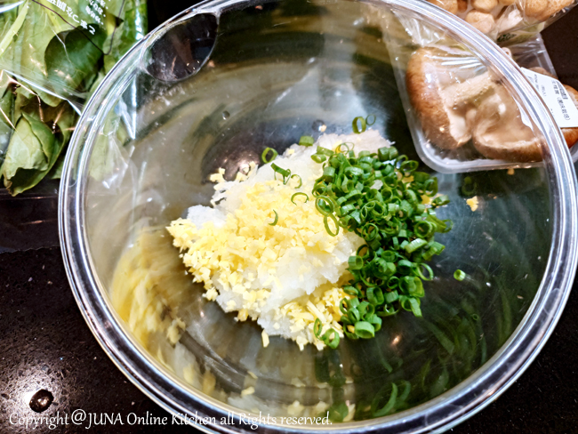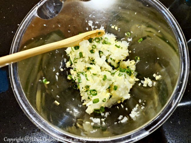 おろしにはしょうがやねぎを混ぜ込んであります。