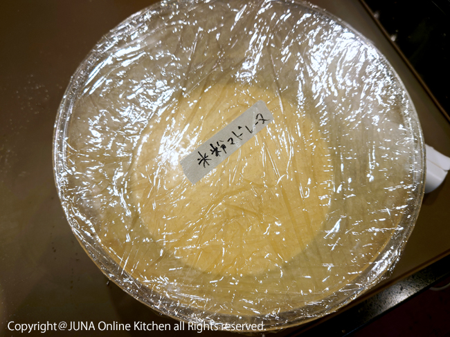 米粉は事前にふるう必要はなく、グルテンがないのでグルグル気にせず混ぜてOK。