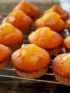 8.200℃に予熱したオーブンを180℃に下げ、9~10分(大きめのカップの場合は12~15分)焼き、型からはずして網に取る。粗熱が取れたら袋に入れ、乾燥を防いで保存する。