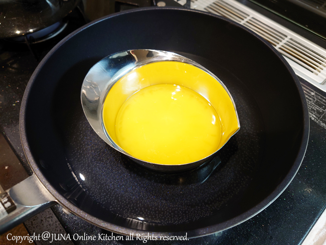 • フライパンに70~80℃の湯を用意しておく。