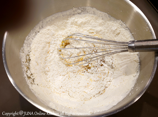 • 薄力粉とベーキングパウダーを合わせて2回ふるっておく。