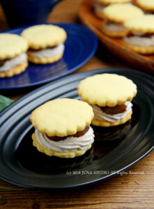 生地にはマロンペーストを混ぜ込み、さらに栗の渋皮煮を加えています。渋皮煮は市販のものでももちろんOKですが、手作りのものを使うとおいしさもひとしおです。
