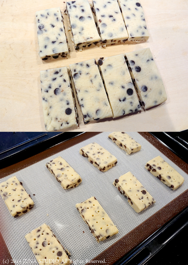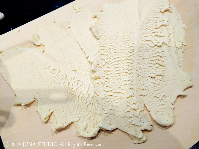 7.粉180gで作った場合は包丁で16等分に、90gで作った場合は8等分にする。
