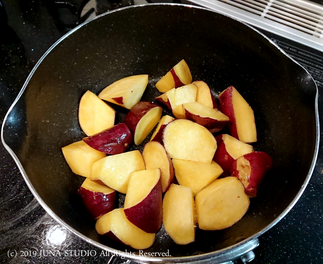昆布だしで作るさつまいもの煮もの